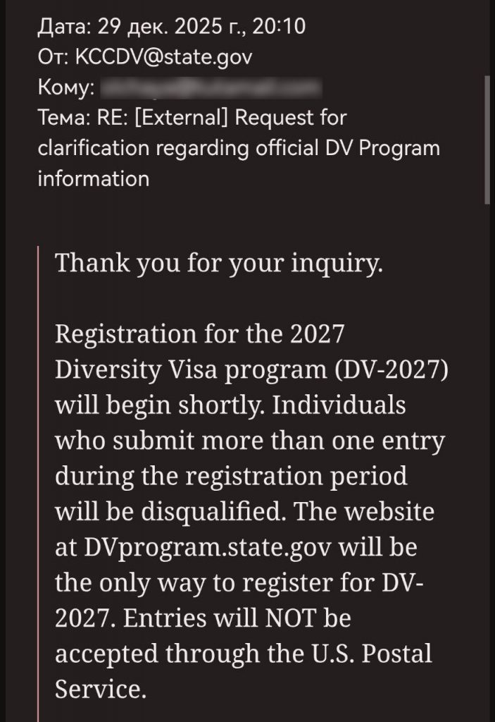 Госдеп США в лице своих сотрудников из Кентукки на вопросы по почте отвечает типовыми отписками: DV2027 registration begin shortly — «начнётся СКОРО».